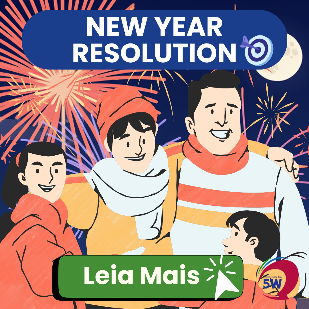 My New Year’s resolution is to study English every day. — Minha resolução de Ano Novo é estudar inglês todos os dias.